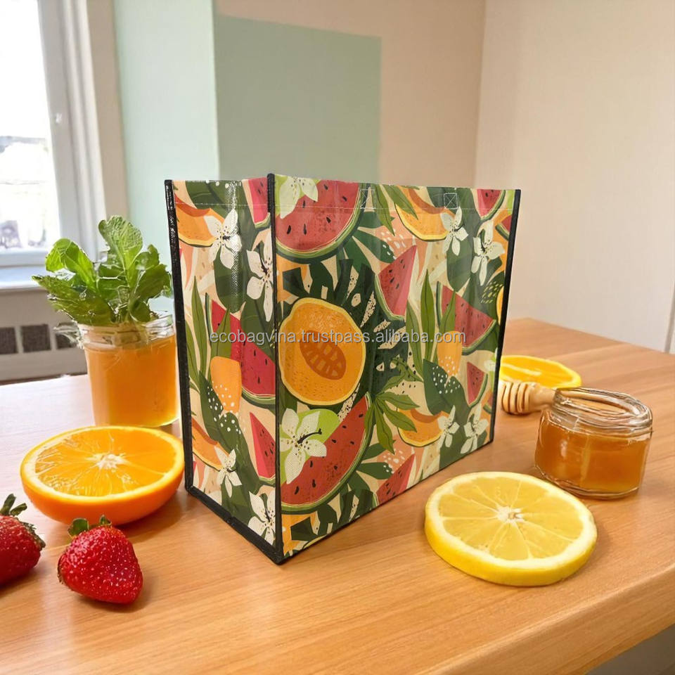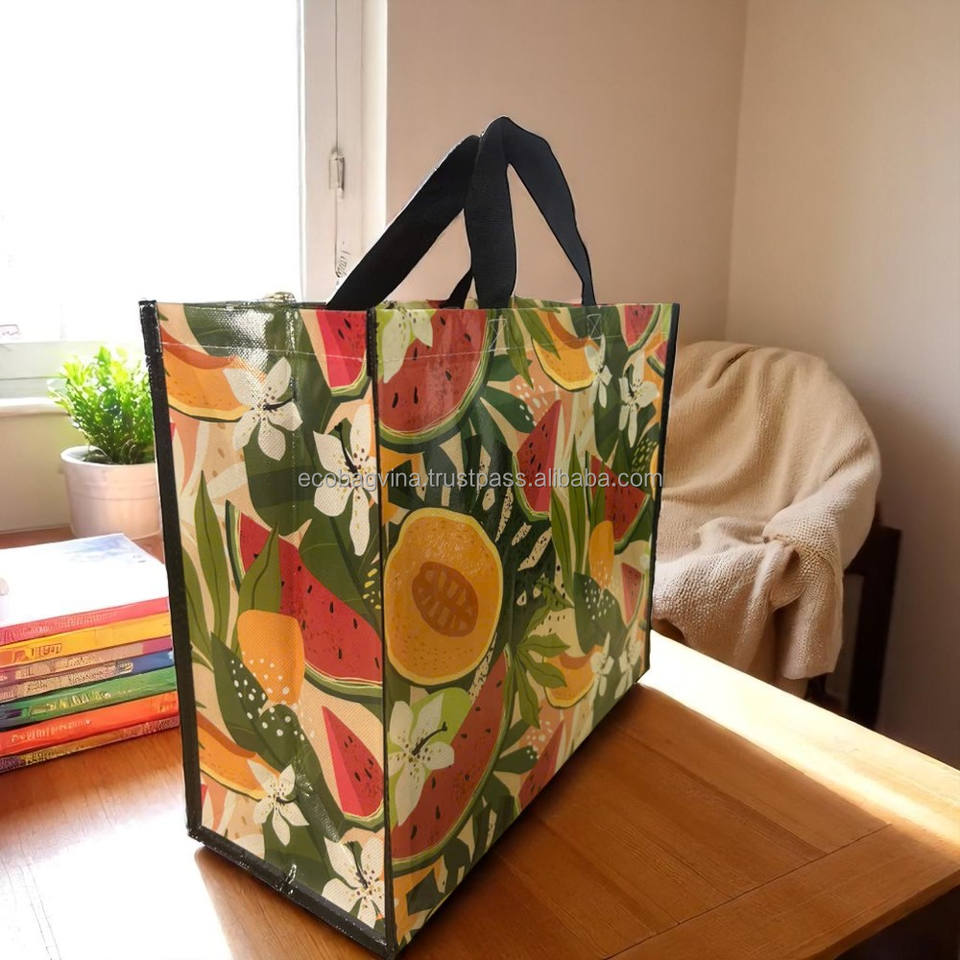 ECOBAG VINA Customized Logo Printed Handbag Glossy Laminated Non-PP Woven Shoulder Closure Medium Shopping Bag Vietnam Origin