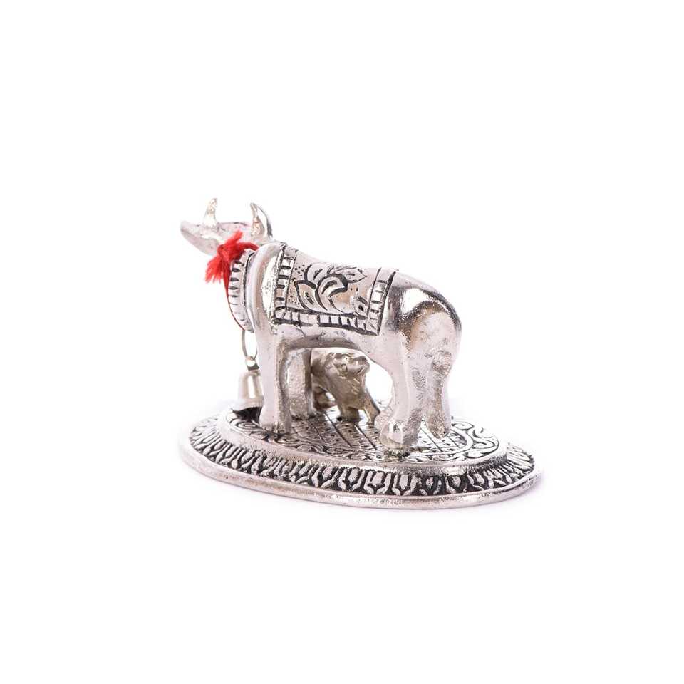 ECraftIndia Handcrafted Silver Metal Cow Calf Figurine Vintage Art Style Home Ornament 8x5x6cm for Office Living Room Wedding
