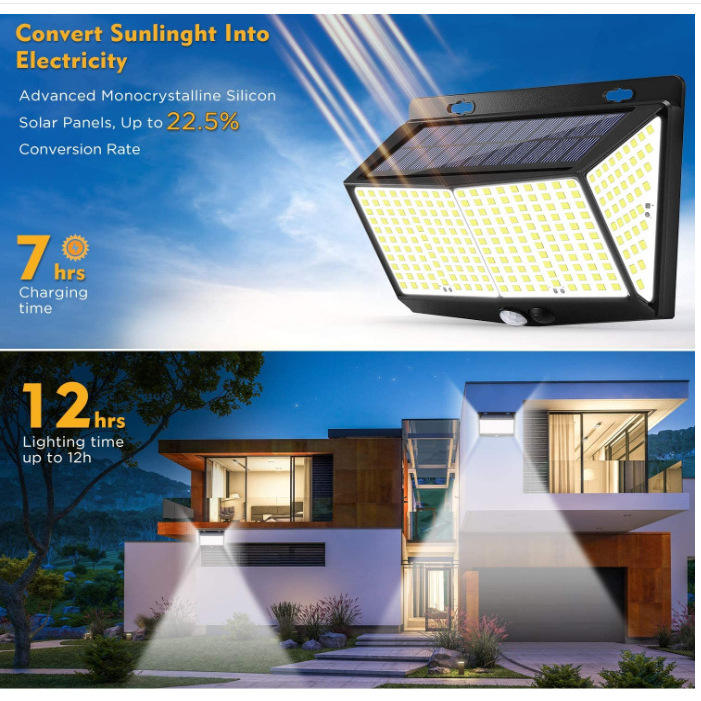 EGH IP65 Double Head 100 LED Solar Wall Light Waterproof with Motion Sensor Control for Garden Use