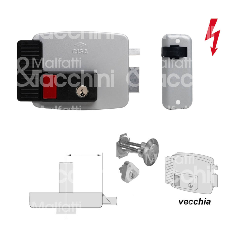 ELECTRIC LOCK apply detached cylinder 12V AC CE for doors with self-locking latch button Open latch Figure