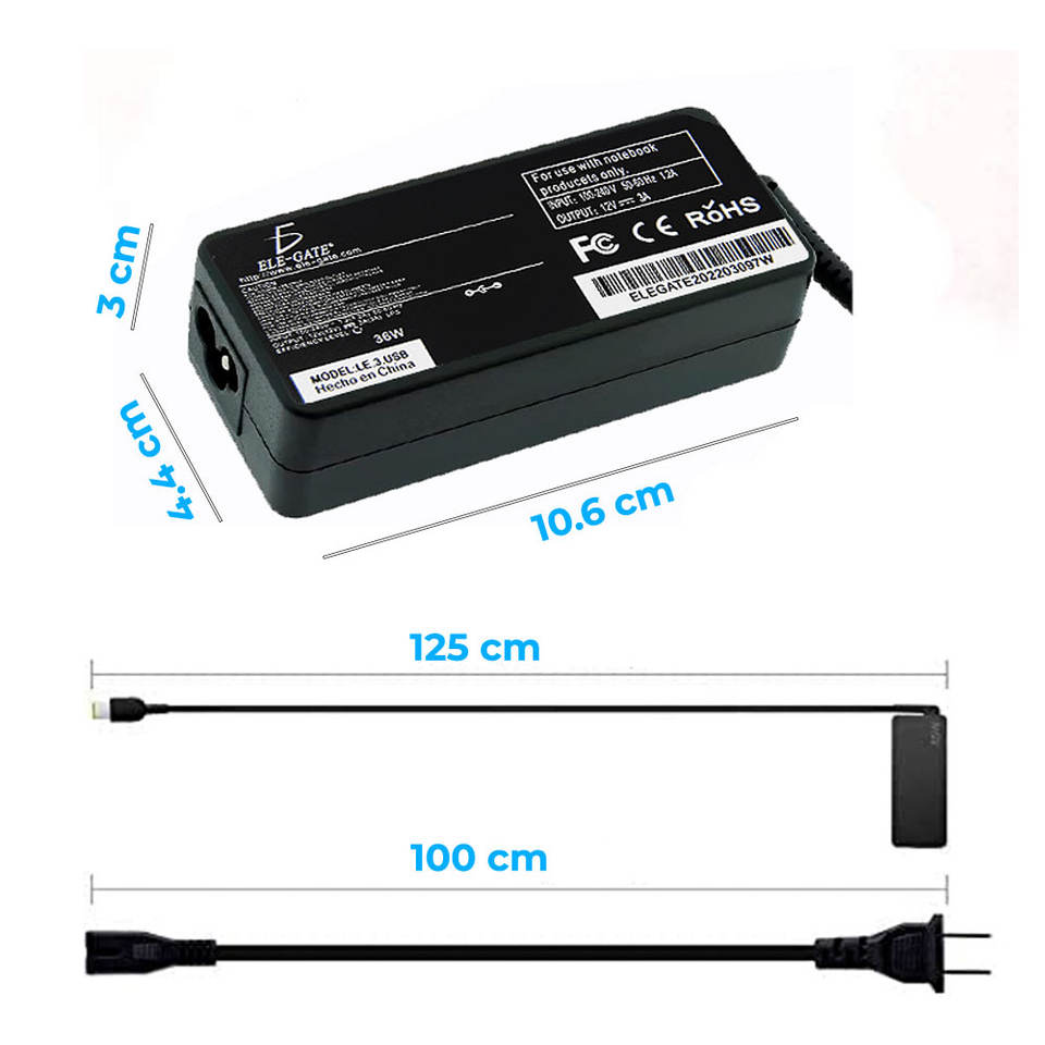 ELEGATE 12V 3A 36W Tablet Charger for ThinkPad 10/11 and ADLX36NDT2A (Model LE.3.USB)