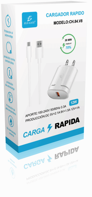 ELEGATE USB Fast Charger 18W 5V 2.1A with Micro V8 Cable 1x USB Port Model CH.84.V8 B1395 Mexico