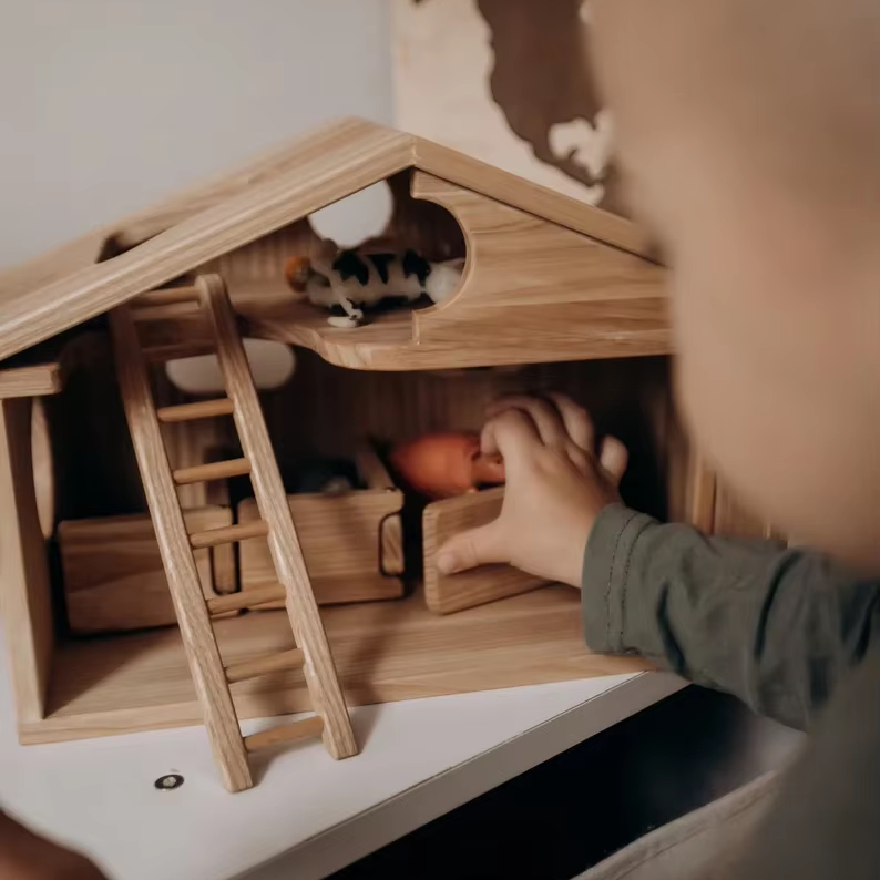EN-71 Wood Farm Toy Set Montessori Barn Play set Handmade for solid wood Early Educational Building Block Barn Playhouse Toy