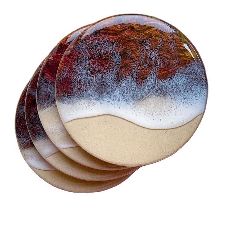 ENHANCES Quality Epoxy Resin Coasters Set With Ocean Effect Decorative Square Round Epoxy Wood Resin Coaster by Craftsy Home