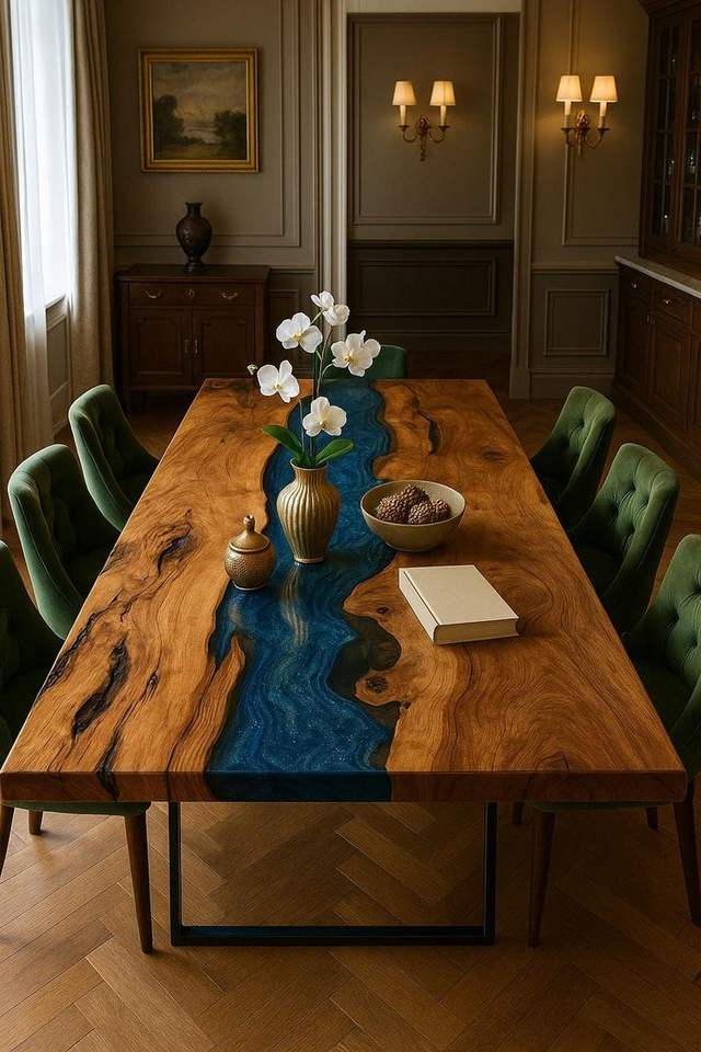 EPOXY HANDCRAFT ROUND EPOXY RESIN TABLE FOR DINING ROOM Furniture Wood and Resin River Table for Home Office