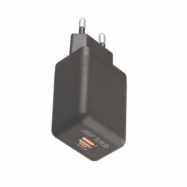 ERD EUROPEAN PLUG USB A/C DUAL CHARGER BLACK 33W