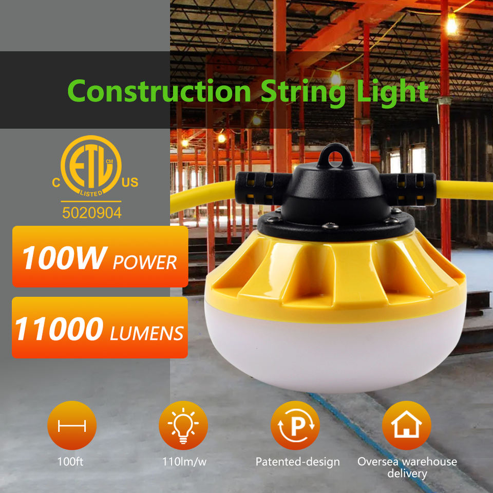 ETL Listed 100FT 100W 11000 Lumen String Lights Working Lighting Construction Temporary Lights