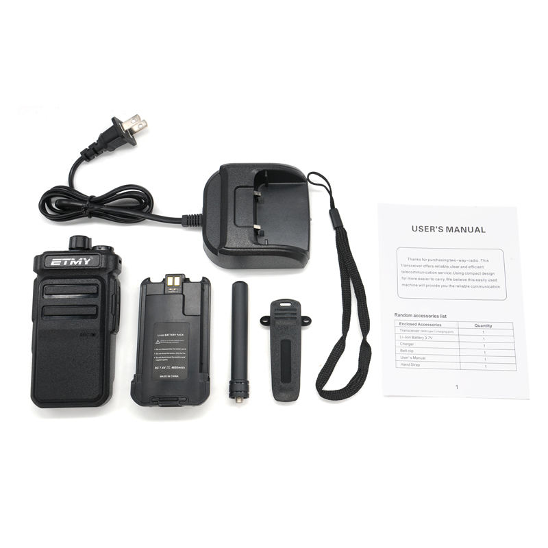 ETMY ET-599 16-Channel UHF Analog Walkie Talkie with VOX USB Type-C Quick Charge 3.7W Output 0-3KM Range Built-in Li Battery