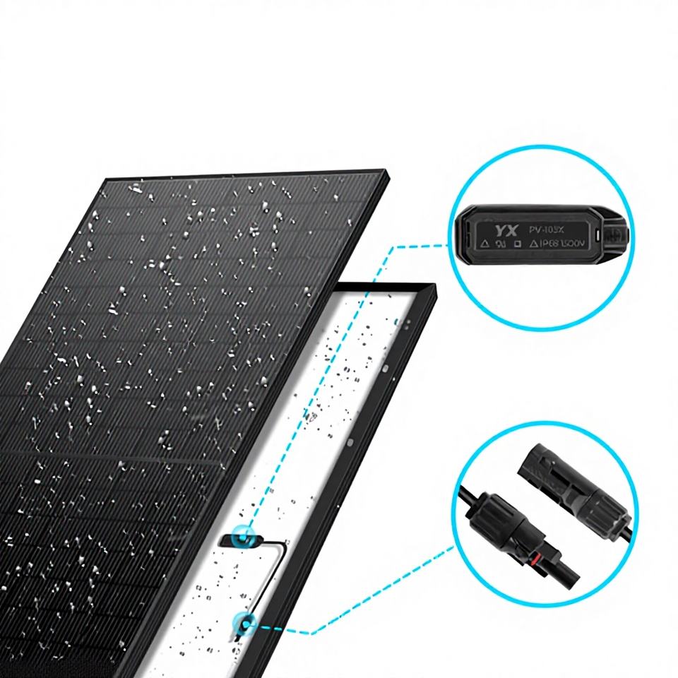 EU All Black Solar Panel with 182mmx182mm Cells and 63.23x44.65 Inch Dimensions