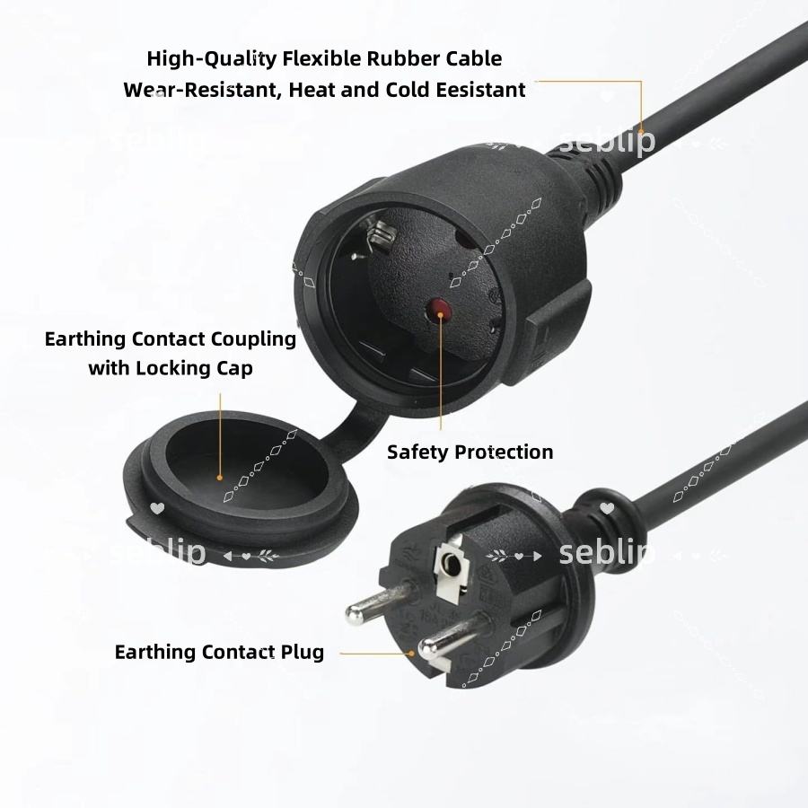 EU Plug Male to Female Extension Cord Waterproof Cover 16A 3840W Max Power Strip Heavy Duty IP44 for Hospital Use
