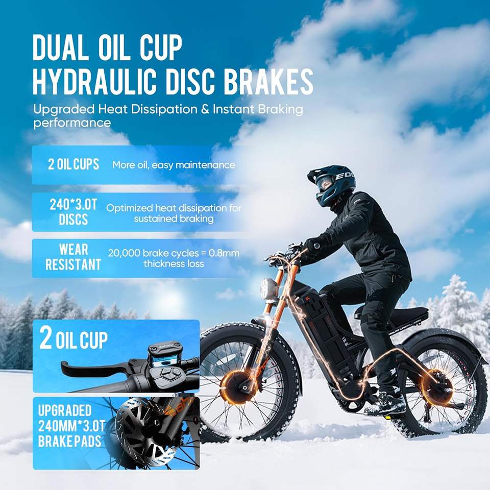 EU/UK/US Warehouse Electric Fat Bike Dual Motor 250W Front & Rear Steel Frame Lithium Battery 235 Mile Range Adult E-bike