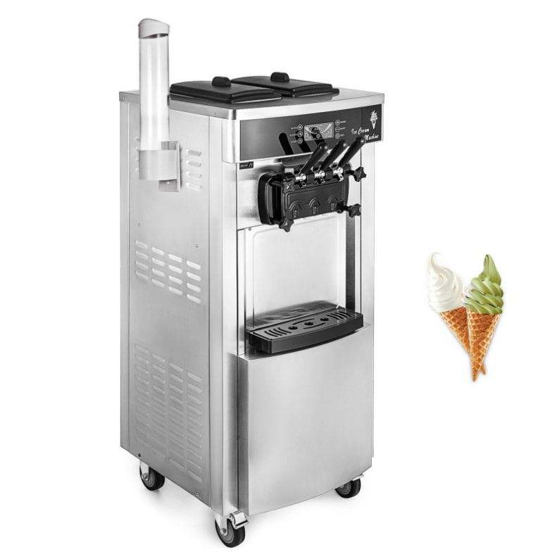 EU Warehouse 2+1 Flavors Commercial Soft Ice Cream Machine Ice Cream Maker Cone Holder 2200W