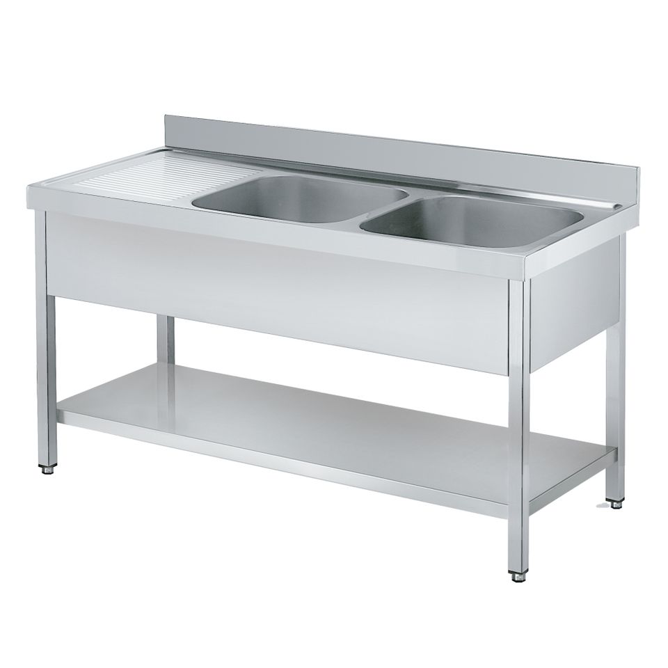 EURAST Quartz & Granite Sink with Frame 1 Shelf 1 Drainer 2 Bowls & Faucet 500x400x250-1600x600x850mm 2215I061 Model-2-Shot Hole