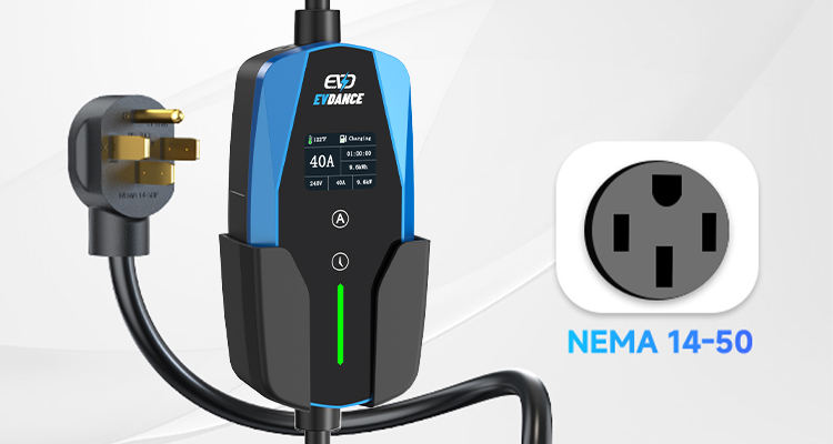 EV Charger Type1 16.4ft Cable J1772 Socket 40A Single Phase EVSE Portable Charging Station APP Control for Electric Car