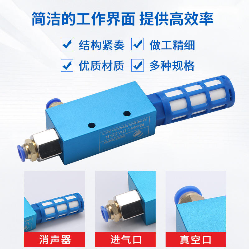 EV10 15 20 25 30R High-Suction Pneumatic Vacuum Generator with Thread Industrial Components High-Flow Negative Pressure Source