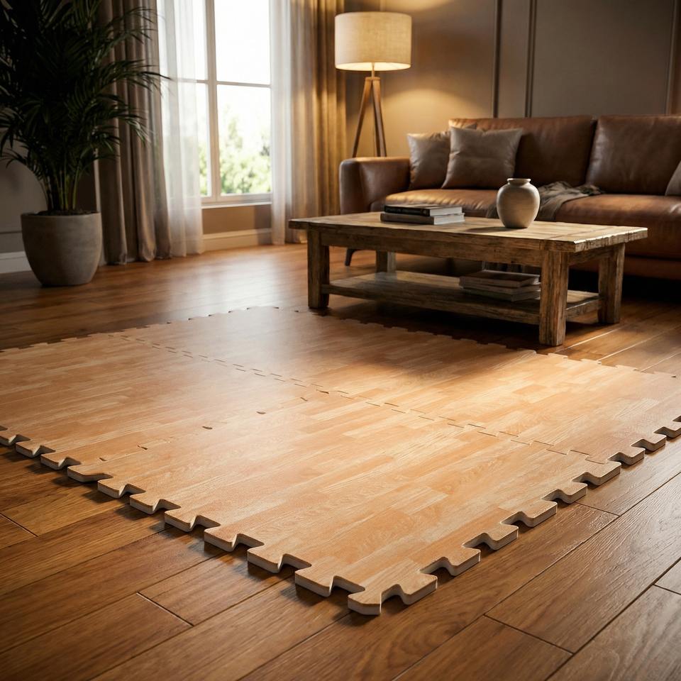 EVA Foam Wood Pattern Floor Mat 60x60cm x 10mm – Interlocking Soft Flooring for Living Room & Home Use