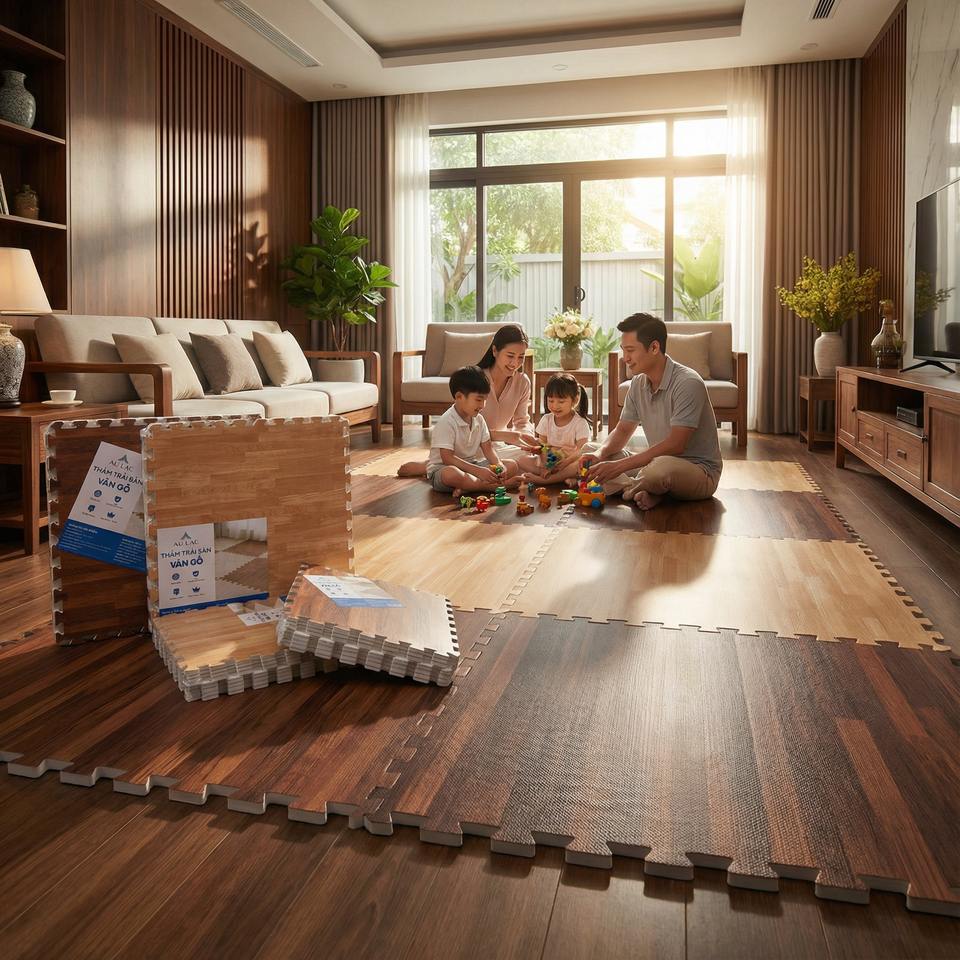 EVA Foam Wood Pattern Floor Mat 60x60cm x 10mm – Interlocking Soft Flooring for Living Room & Home Use