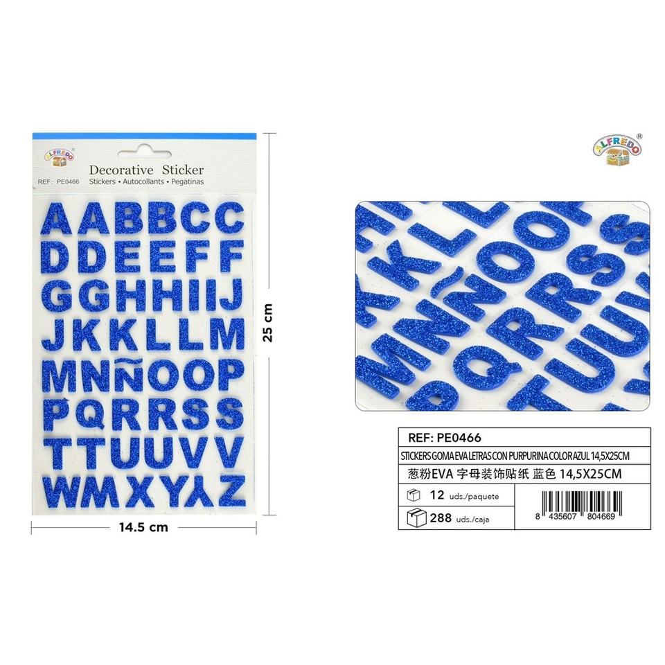 EVA foam stickers with blue glitter letters, 14.5x25cm, for crafts