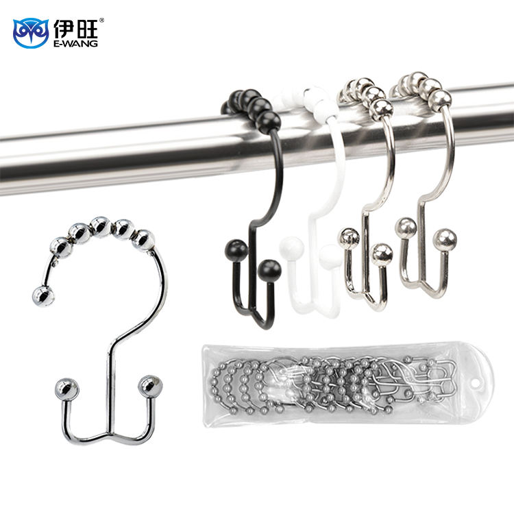 EWANG Free Sliding Double Useful Iron Bathroom Shower Curtain Ring Hooks