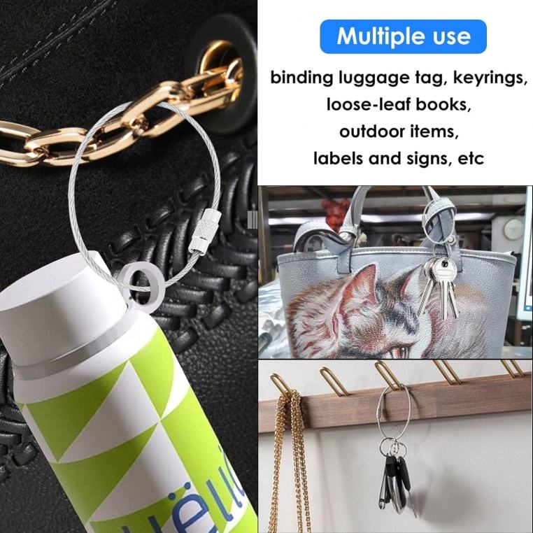 EWANG Stainless Steel 160mm Silver Screw Locking Wire Rope Keychain