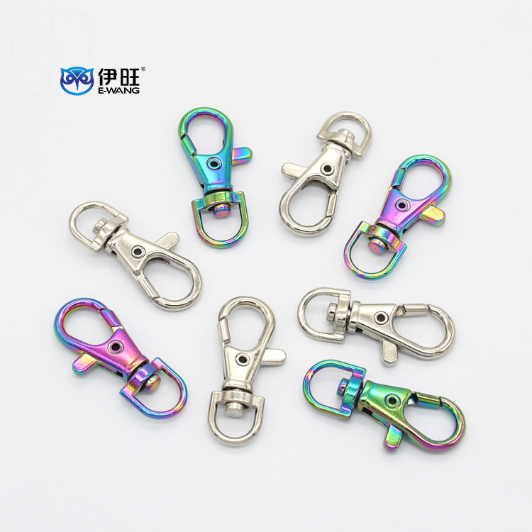 EWANG Wholesale Dog Buckle Rainbow Rose Gold Zinc Alloy Rotary Swivel Lobster Clasps Metal Snap Hooks for Bag Accessories