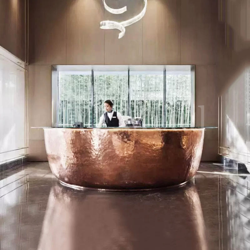 EX964 Mirror Finish Stainless Steel Bar Counter for Luxury Hotel Lobby Interior