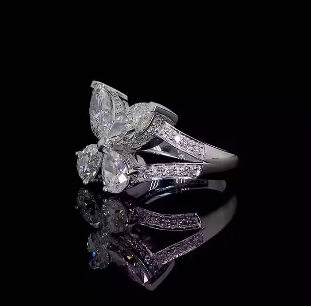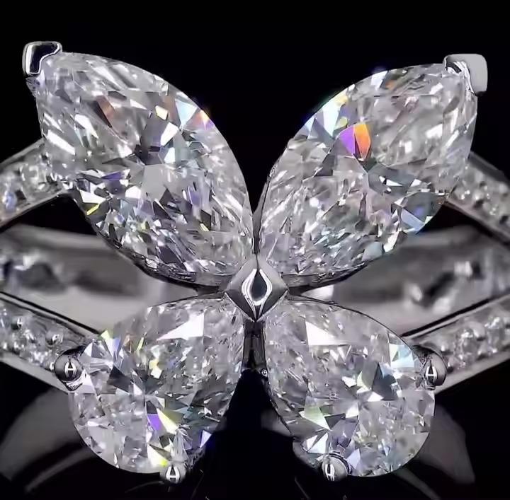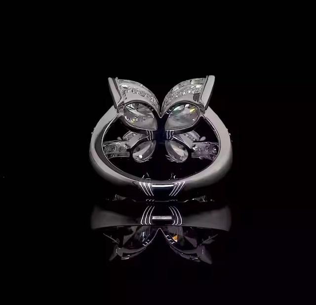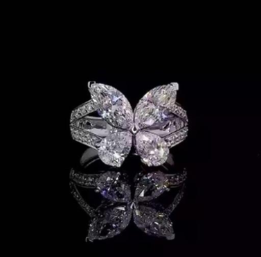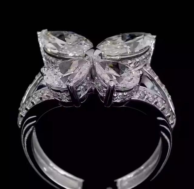 Each Marquise and Pear Lab Grown Diamond Butterfly Shape 14K white gold ring Engagement Gift for Her ring for women