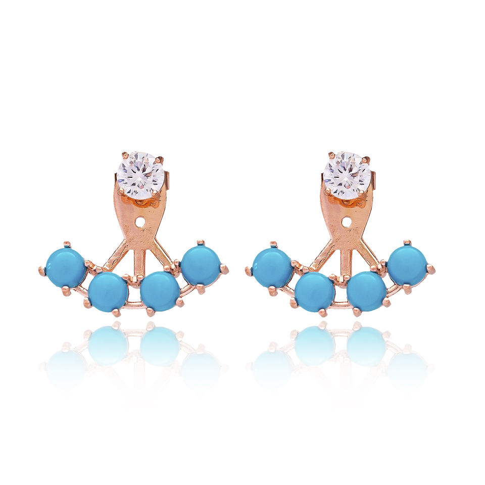 Ear Jackets With Black, Sapphire and Turquoise Stone Earring Turkish Wholesale Handmade 925 Sterling Silver Jewelry