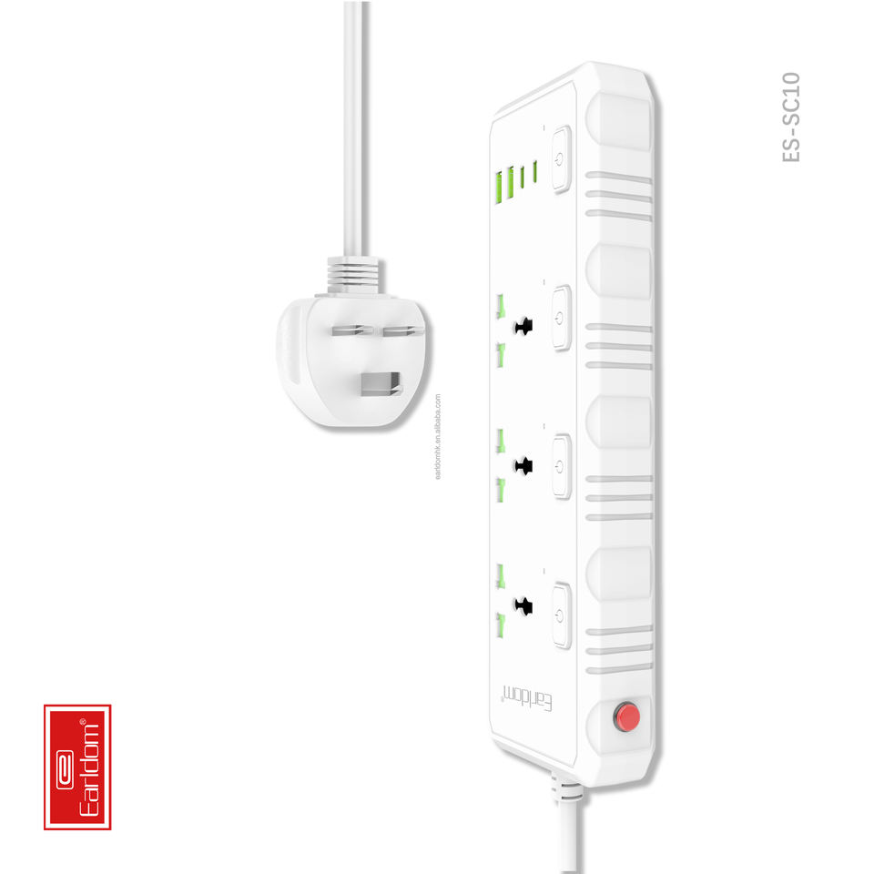 Earldom Plug Sockets Power Strip Fast-Charging Multi-Socket Power Extension Cord Multiple Protections Power Strip