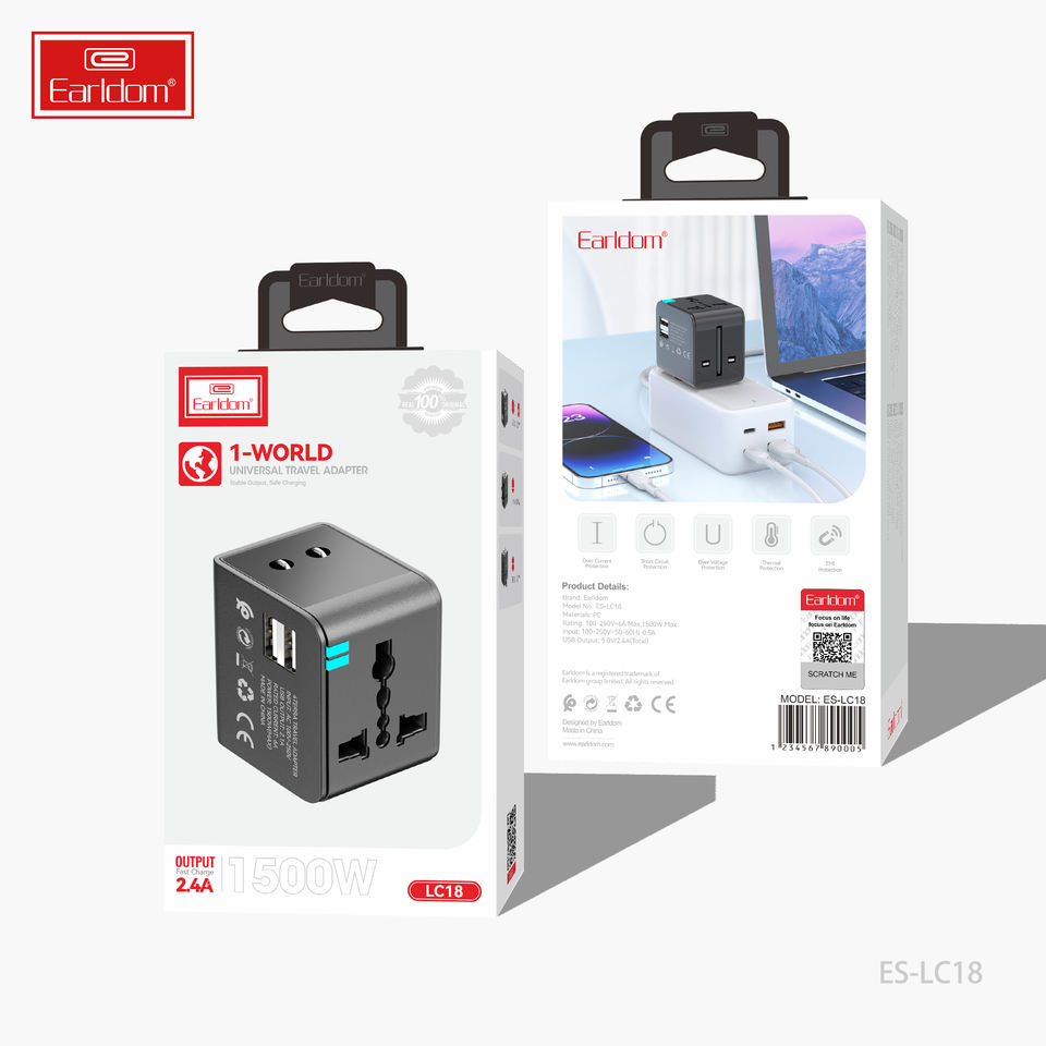 Earldom Universal Travel Adapter Worldwide Universal Mobile Charger Electrical Plugs Smart World Type-C USB Travel Adapter