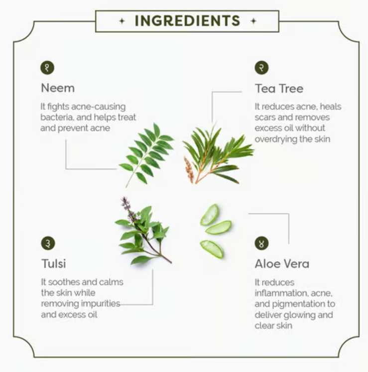 Aloe Vera, Glycerin, Green Tea, Shea Butter, Azelaic Acid, Vitamin C Serum, Neemmain ingredient