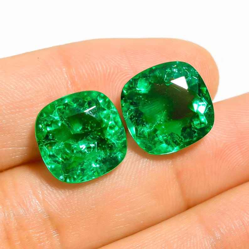 Earring Emerald Gemstone Faceted Pair Gemstone Lab Grown Colombian Emerald for Making Jewelry Full Inclusion Emerald Gemstone