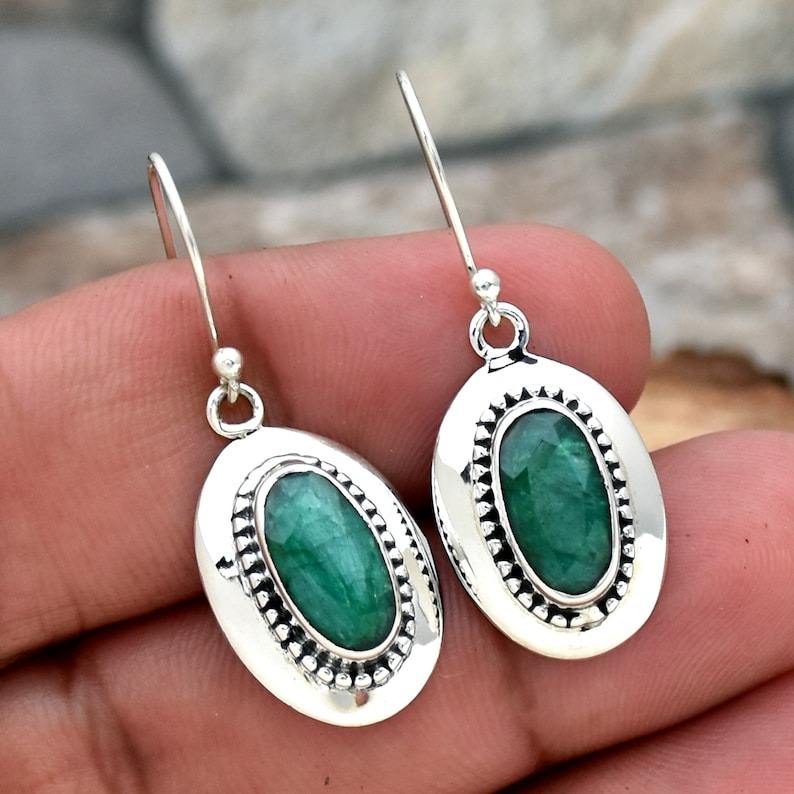Earrings for Women Best Quality Gemstone Emerald Gemstone Earrings 925 Solid Sterling Silver Dangle Silver Earrings Jewelry