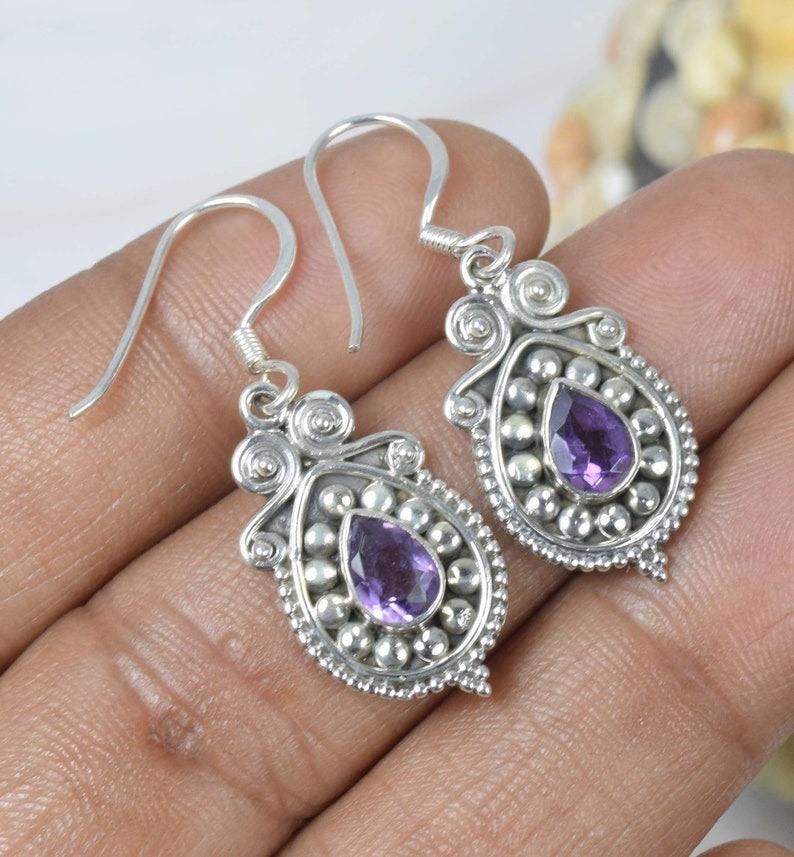Earrings for Women Dangle Earrings Amethyst Gemstone High Quality 925 Solid Sterling Silver Girls Earrings Silver Jewellery