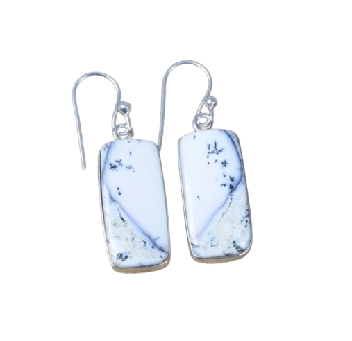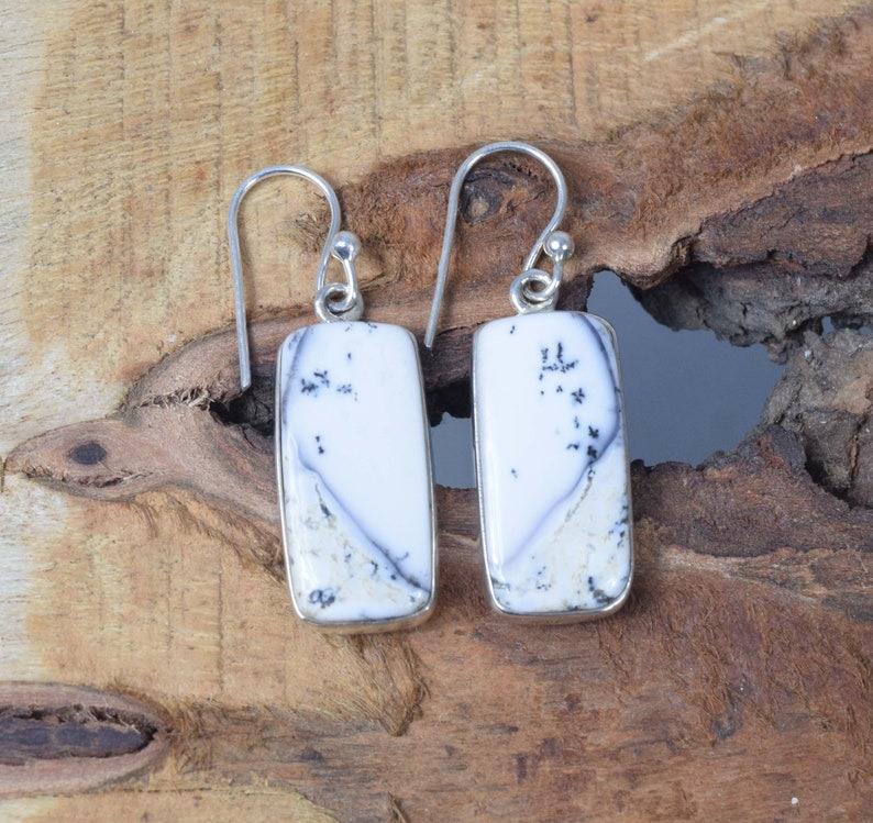 Earrings for Women Dangle Girls Fashion Dendrite Opal Gemstone Handmade 925 Solid Sterling Silver 925 Stamp Silver Jewellery