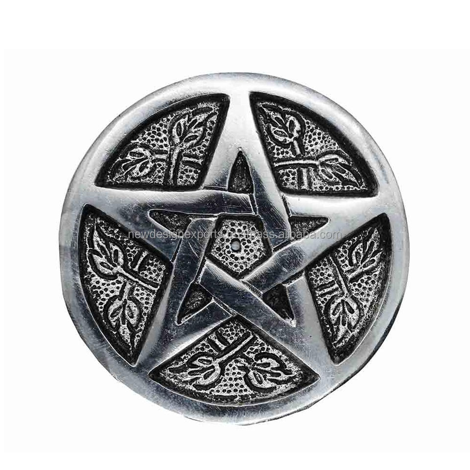 Earth Pentacle Incense Plate Metal Stick Cone Holder with Embossed Central Pentacle Symbol Scented with Strawberry Clary Sage