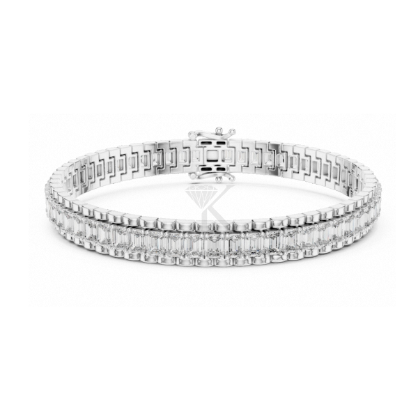 East West Emerald Cut Diamond Link Bracelet Featuring Lab Grown Diamonds In Yellow Gold Watch Band Style Heavy Statement