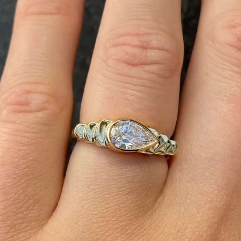 East to West Pear Cut Bezel Set 1.50 Carat Solitaire Unique Design Lab Grown Diamond Engagement Ring 14K Gold Diamond Jewelry
