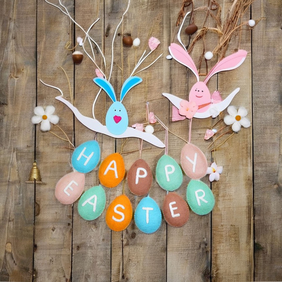 Handmade Easter Egg Garland Wool Still Life Pattern Modern Design for Indoor and Outdoor Decor Happy Easter Decor