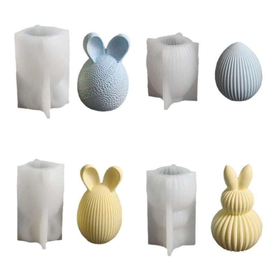 Easter Egg Rabbit Candle Striped Egg Rabbit Ears Rabbit Head Gypsum Resin Candle Silicone Mold