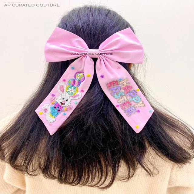 Easter New Collection Indian Handcrafted Beaded Hair Bow Hot Selling Bow Customization Options Trendy Hair Bow