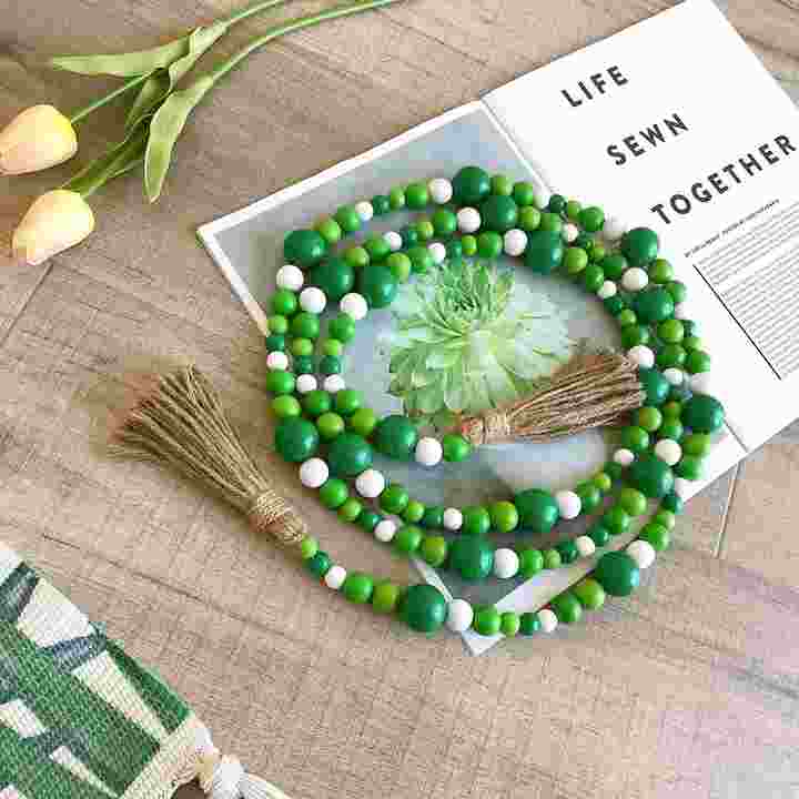 Product Name:colorful Jute Tassels wood Bead Garland Hanging