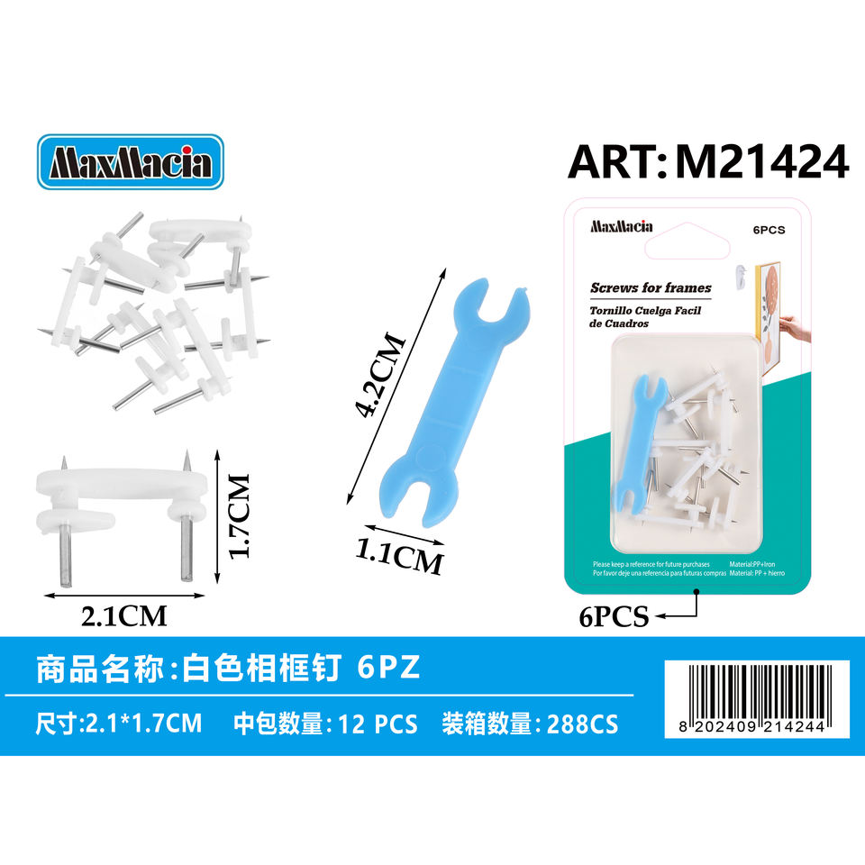 Easy Installation 6-Pack White Picture Frame Nails Hanging Kit for Pictures and Photos