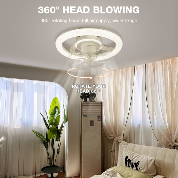 Easy Installation Living Room Kitchen Stepless Dimming 7 Blades Round Fan Light 6 Speeds Remote Control LED Ceiling Fan Light