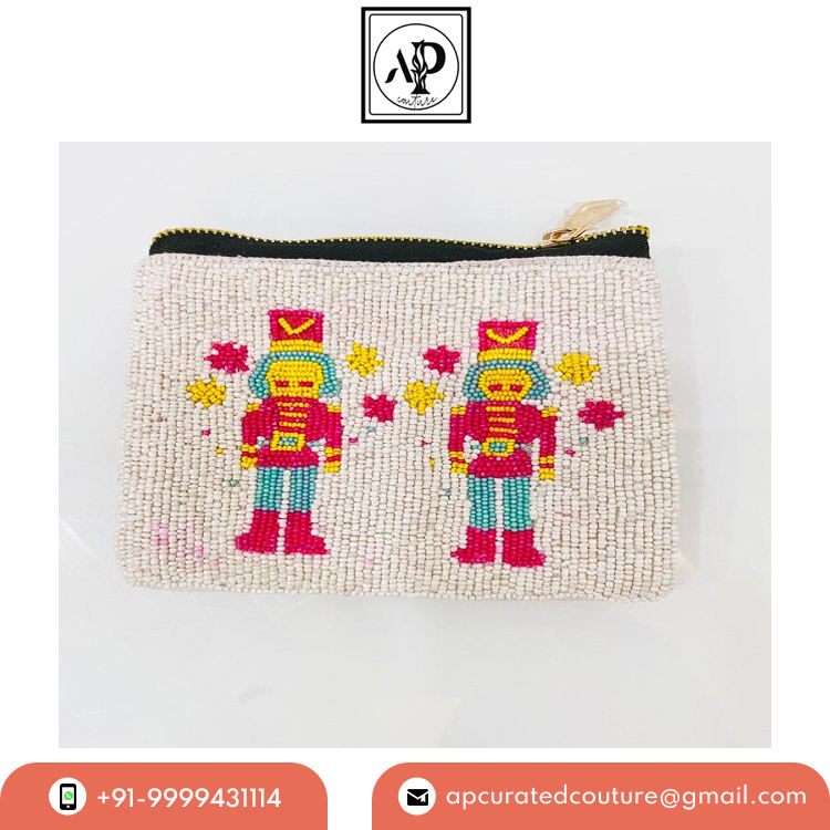 Easy Storage & Travel Carrying High Quality Girls Gift Handmade Canvas Fabric Beads Material Clutches