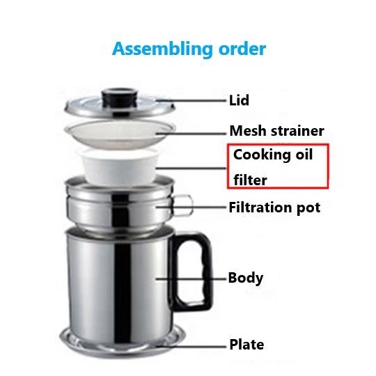 Contents of set:Body, lid, mesh strainer, filtration pot, tray, cooking oil filter