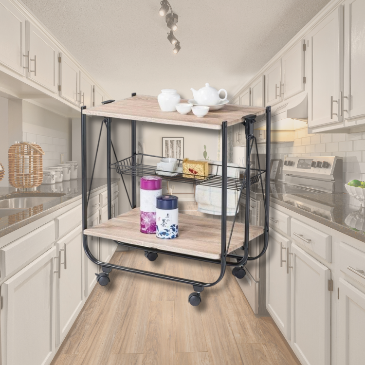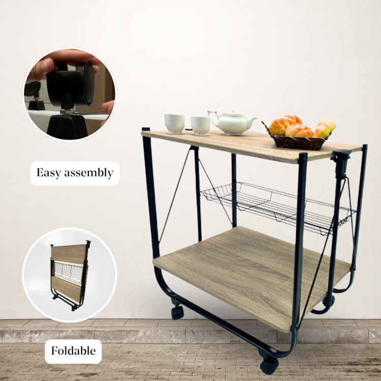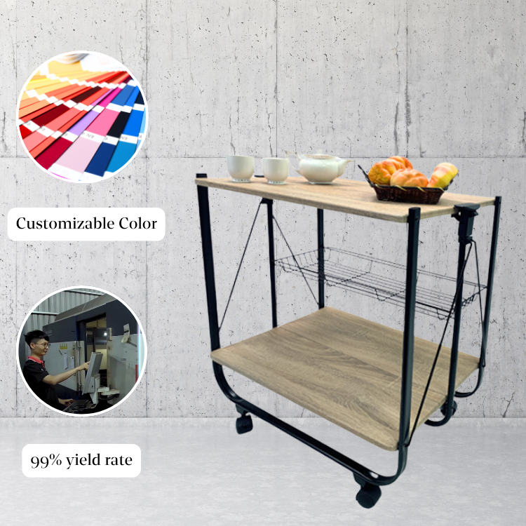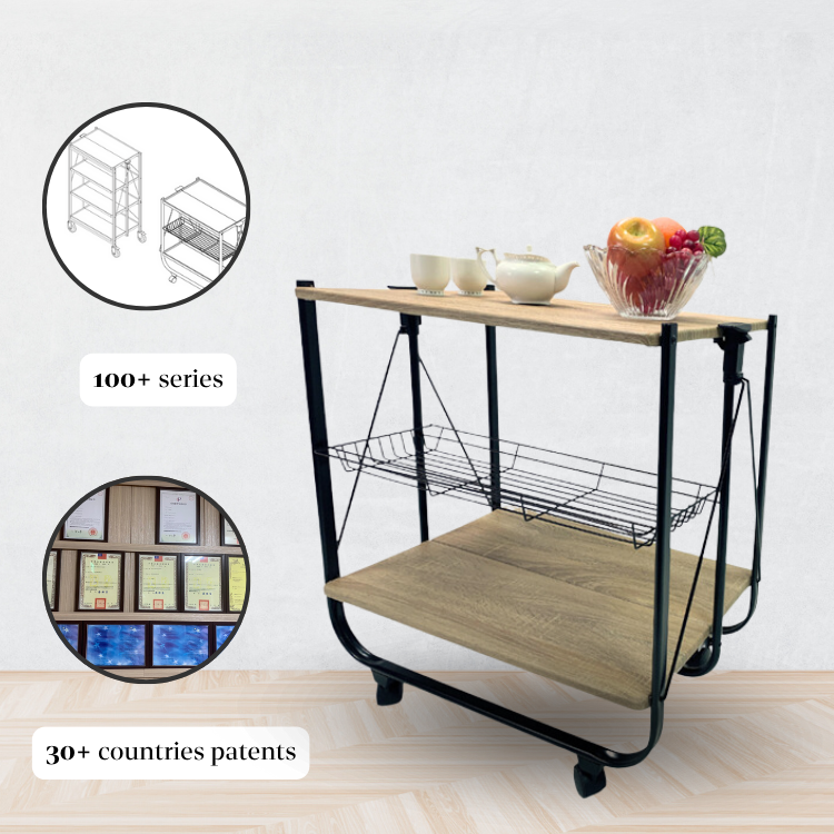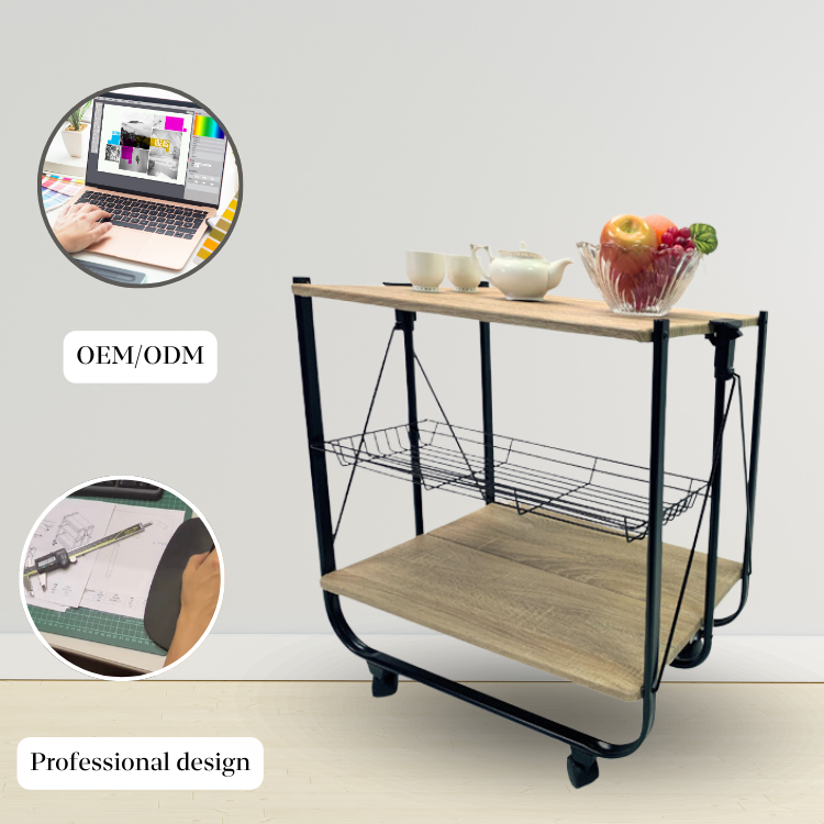 Easy assemble double layer wooden board trolley cart for kitchen