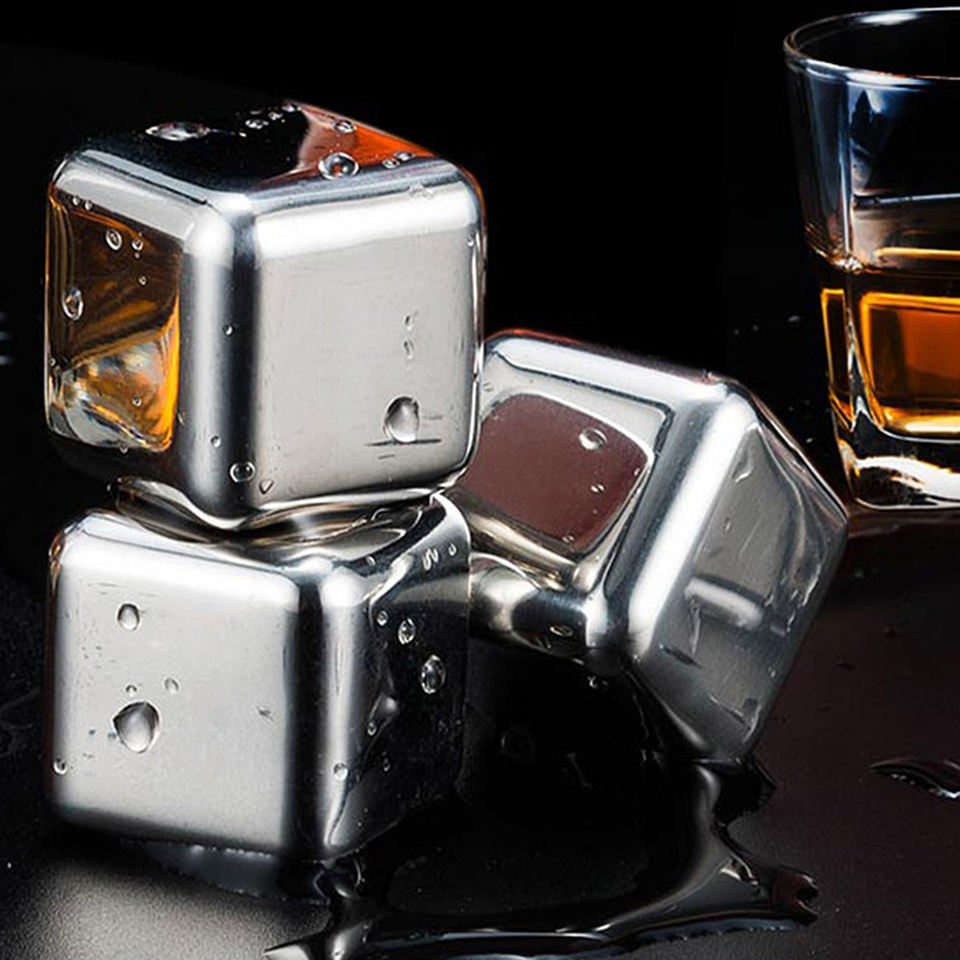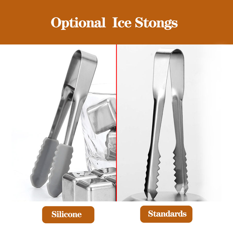Ebay Top Sale 4/6/8/12 Set Reusable with Ice Tongs Stainless Steel Stones Whiskey Ice Cubes