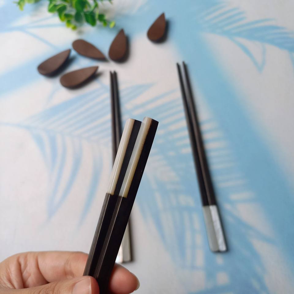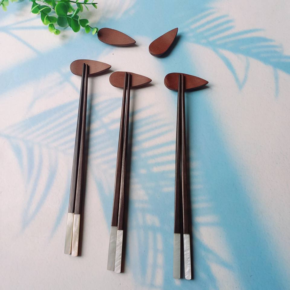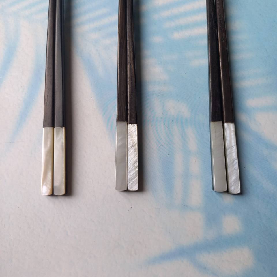 Ebony Wood Chopsticks Mother of Pearl Inlaid Black Chopsticks 25cm Safe Healthy High Quality