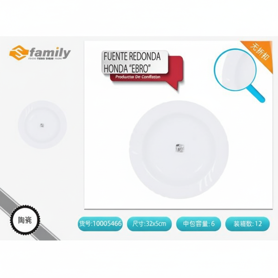 Ebro-32x5cm Round Deep Platter New Design Oval Pattern Ceramic Salad Plate Customizable Tableware for Hotels Offering Samples